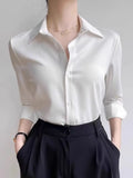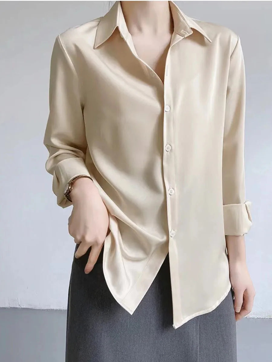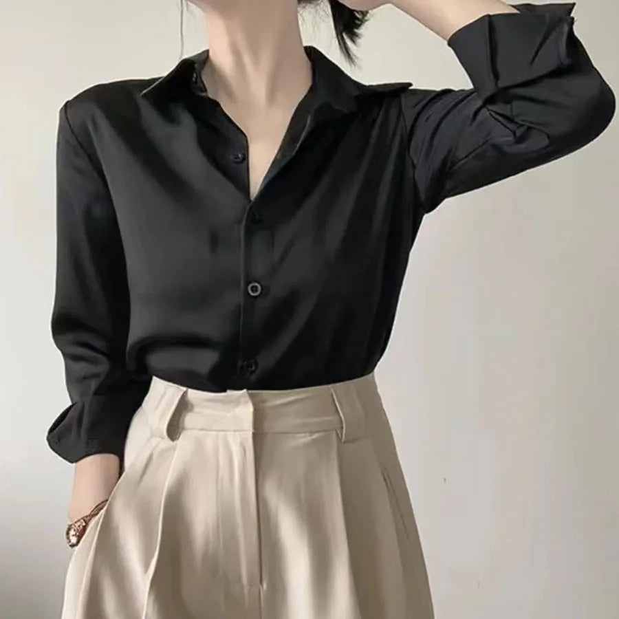 Chic & Versatile – A timeless solid-color blouse that pairs effortlessly with skirts, trousers.