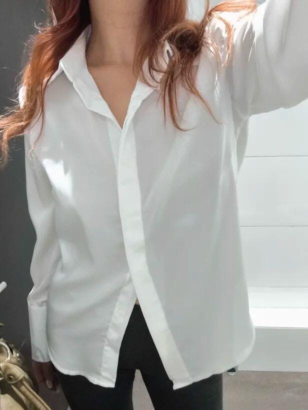 Introducing Women's Luxury Shirt – a touch of sophistication for the modern woman. This slightly oversized shirt, effortlessly combines timeless style with comfort. Elevate your wardrobe with this versatile piece.